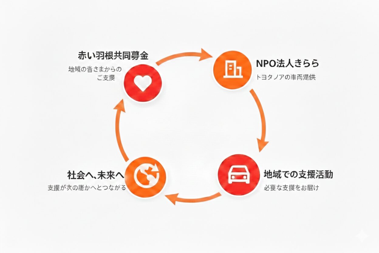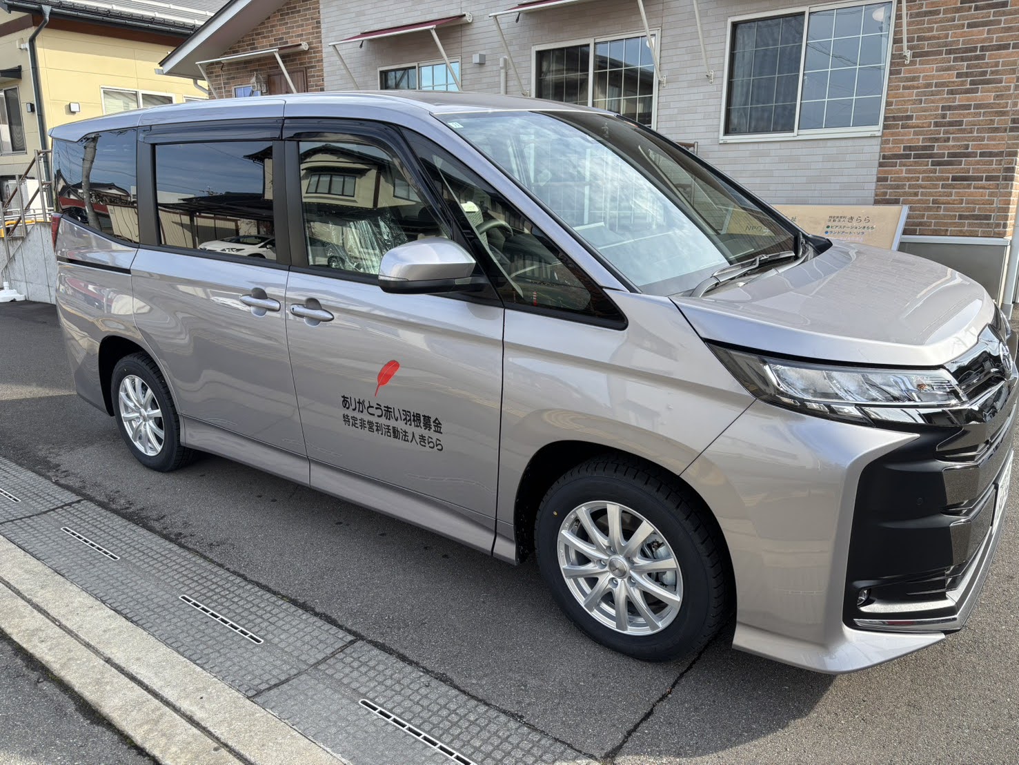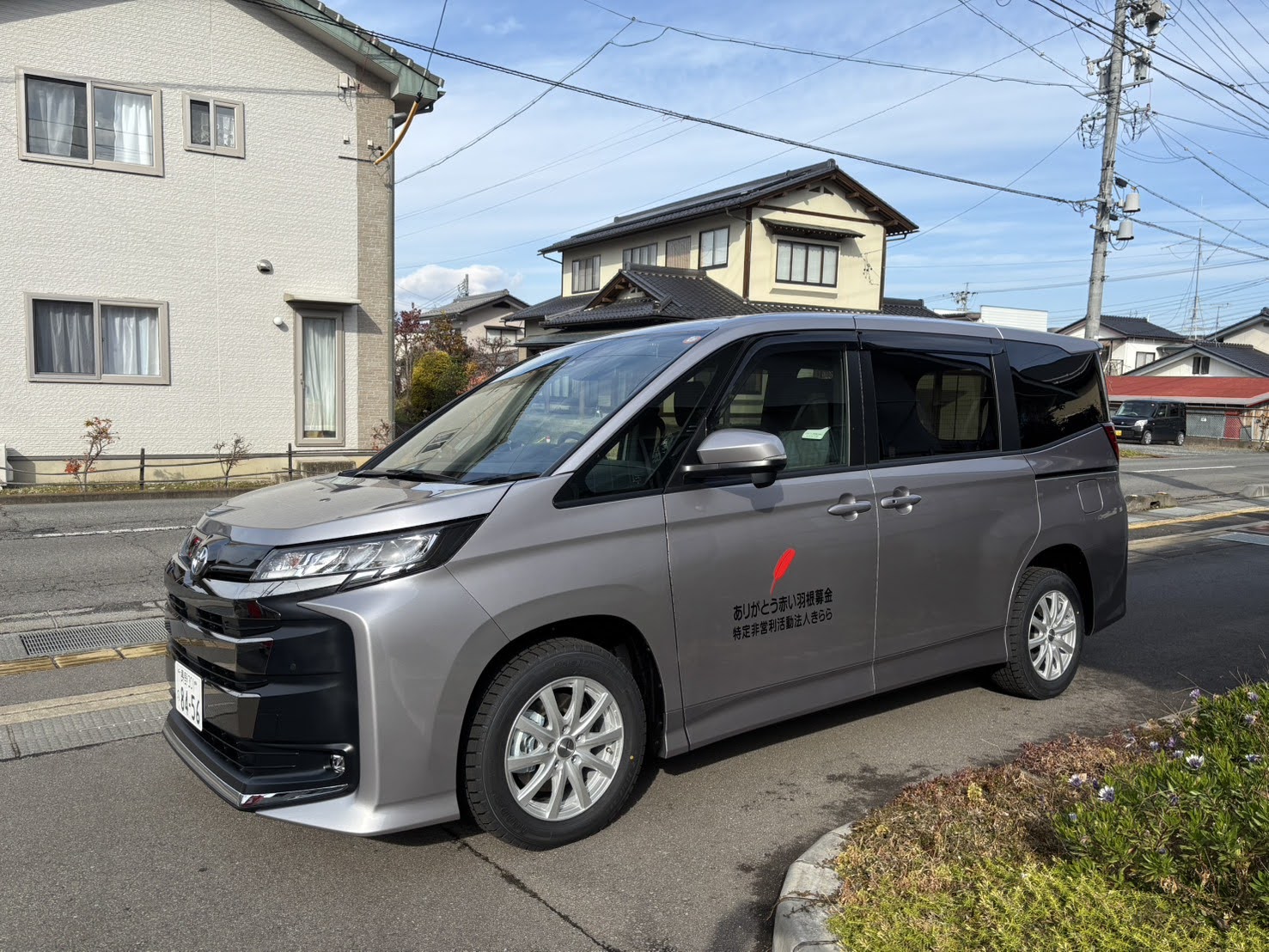 赤い羽根共同募金を通じて、トヨタ ノアの車両提供を受けました。